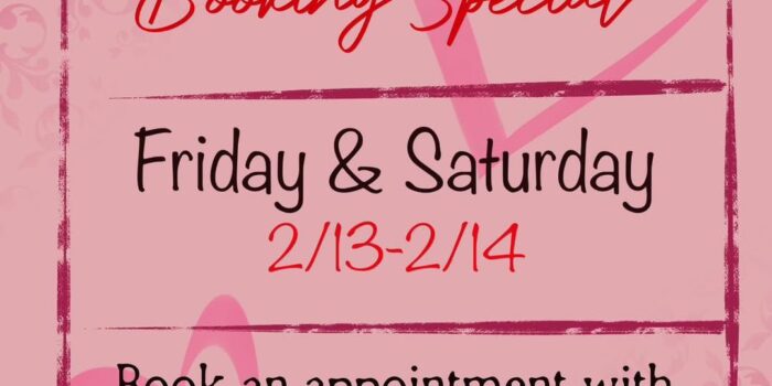 Valentines booking special this weekend! Stop in and book with a deposit to receive a gift voucher for 15% off that can be used by yourself or you can gift it to another. Stop by and book!
